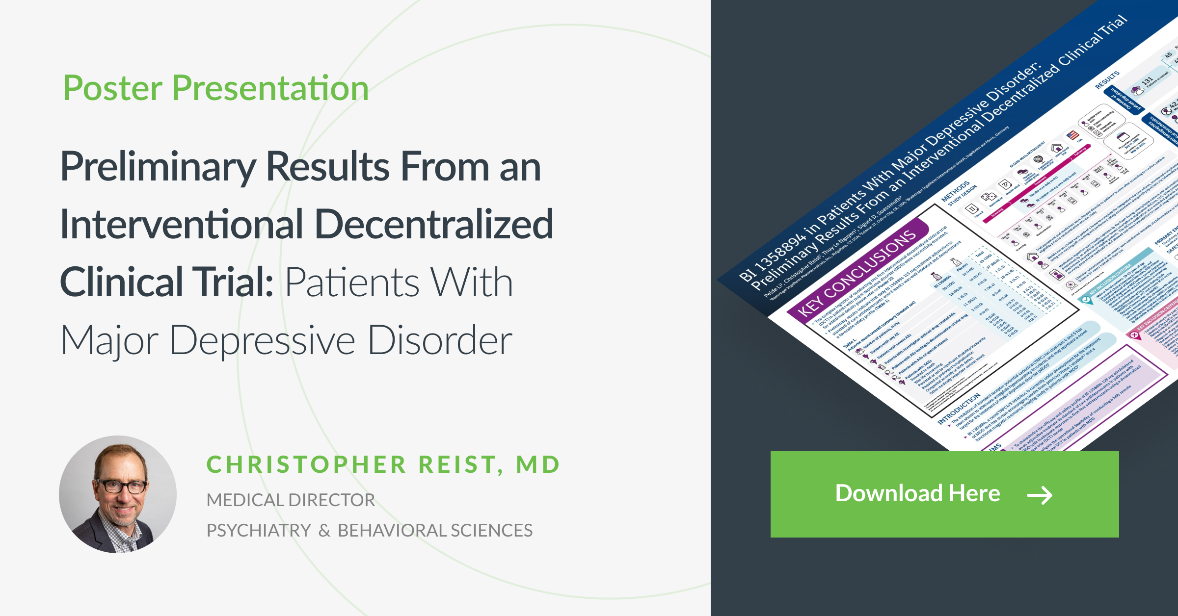 As stated by the sponsor, “The complex logistics of conducting this first interventional decentralized clinical trial in patients with major depressive disorder were successfully executed.”